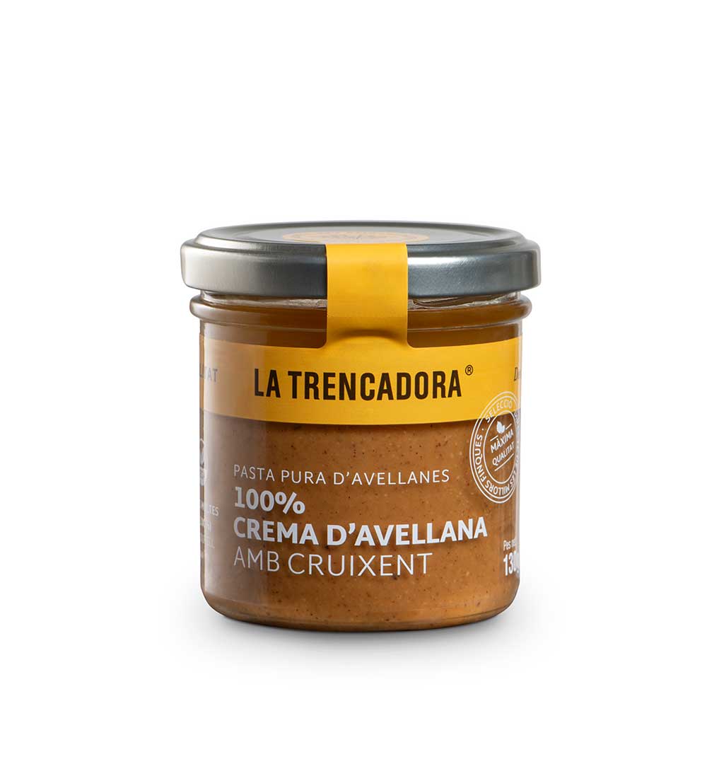 Crema d’avellana elaborada amb un 100% d’avellanes de la nostra terra, sense additius ni conservants, per preservar tot el sabor autèntic. Aquesta versió, amb una textura cruixent, ofereix una experiència única al paladar, aportant un toc de contrast en comparació amb les pastes més suaus i cremoses. Ideal per a receptes on vulguis destacar tant el sabor genuí de l’avellana com una textura sorprenent.